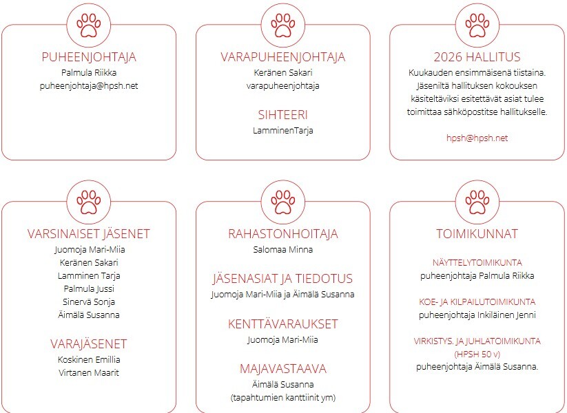 Tammikuinen tervehdys01/18/2026Vuoden 2026 hallitus on järjestäytynyt, vuoden koira -kilpailuihin voi nyt ilmoittautua mukaan ja kenttävuorot ovat anottavissa :)